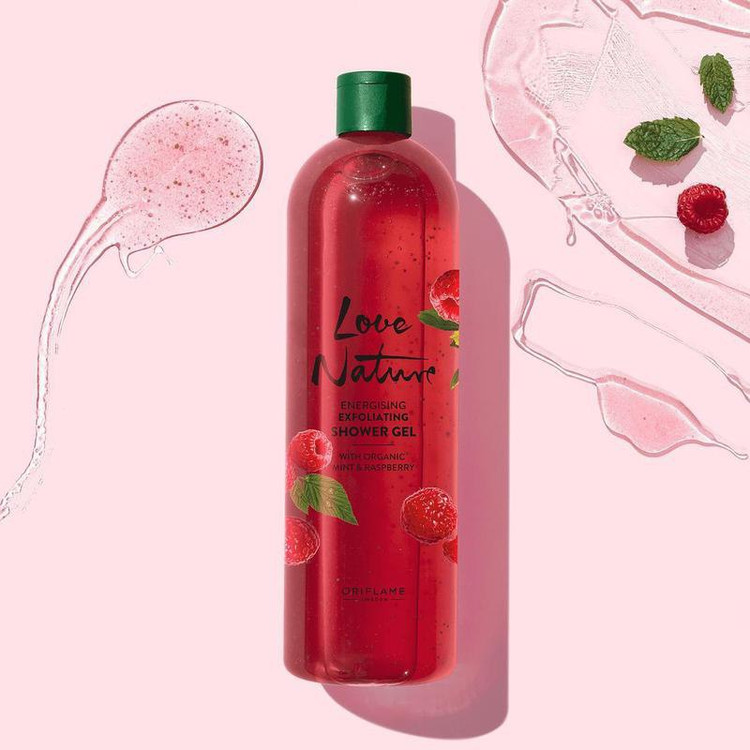LOVE NATURE Energising Exfoliating Shower Gel with Organic Mint & Raspberry